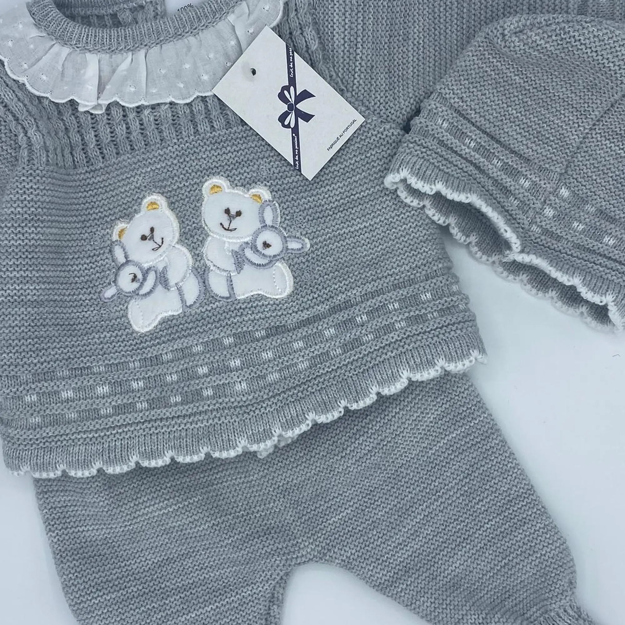 Grey with White combination 2 Teddies embroidery