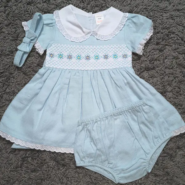 Light Blue Smock Bloomer Dress Set 2703 (6pcs)